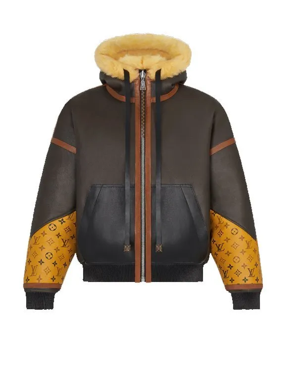 Mary J. Blige Power Book II Ghost Monet Season 01 Episode 10 Tattoo Monogram Reversible Aviator Brown Hooded Leather Shearling Fur Jacket