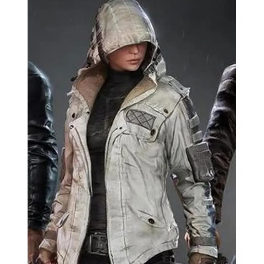 PUBG Women’s White Leather Jacket With Hood