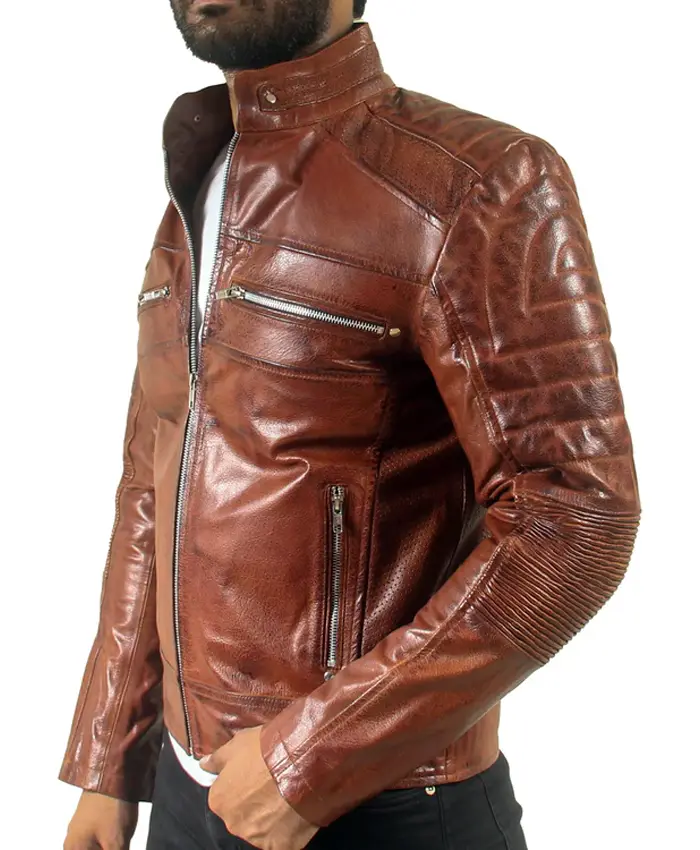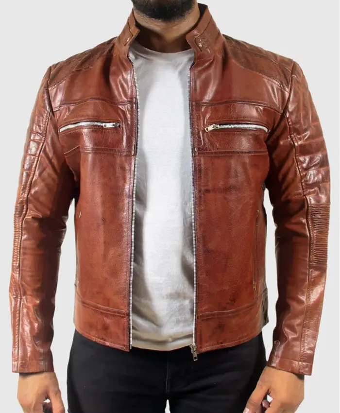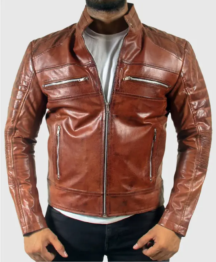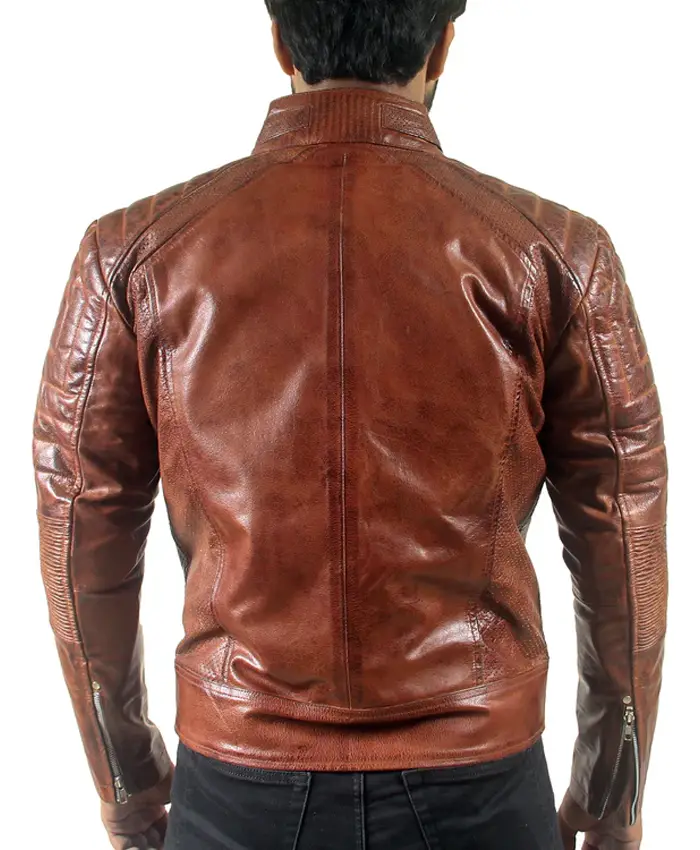 Quilted Brown Men’s Motorcycle Cafe Racer Leather Jacket