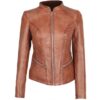 Fitted Brown Leather Cognac Jacket Womens