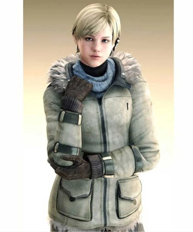 Resident Evil 6 Video Game Sherry Birkin Grey Leather Jacket with Fur Hood