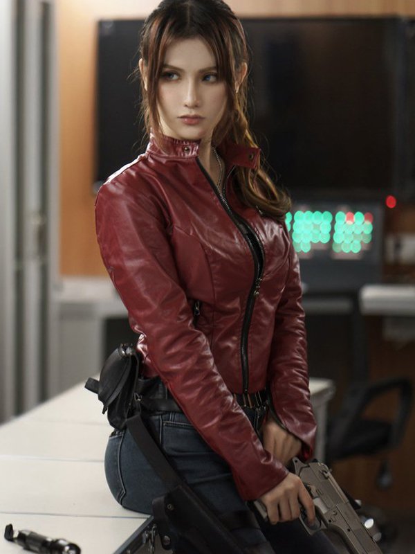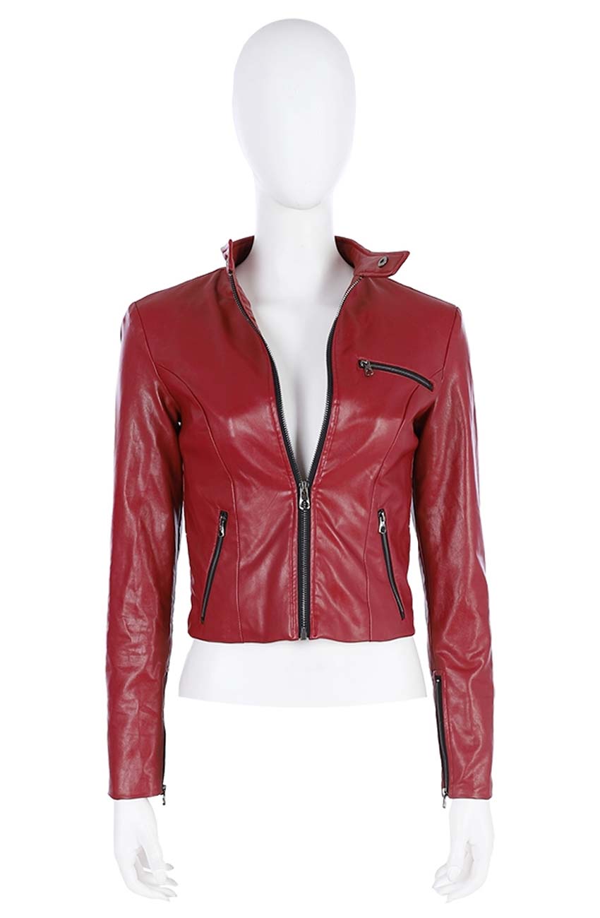 Stephanie Panisello TV Series Resident Evil Infinite Darkness Claire Redfield Red Cafe Racer Zip Up Leather Jacket