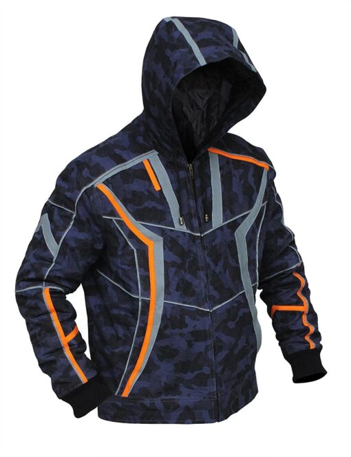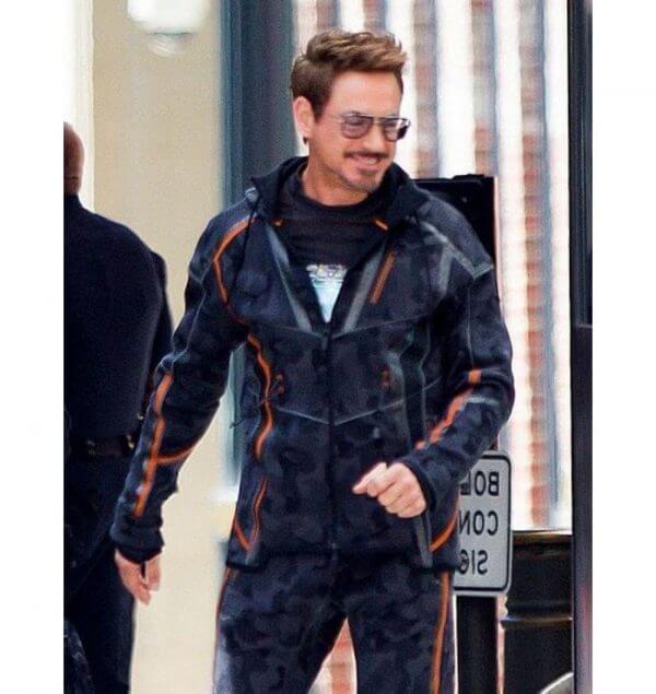 Robert Downey Jr. Infinity War Cotton Hoodie Jacket is one of the satisfying pieces that can be worn for an astounding look. The hoodie has comprised of camouflage textured cotton. and has an inside thick coating that will make you feel loose and calm when you will wear it. The Tony Stark hoodie is including YKK front zip conclusion and has full sleeves with orange strips that will give you an astounding appearance of a character. Look along with the edge pockets in which you can guard your profitable things.