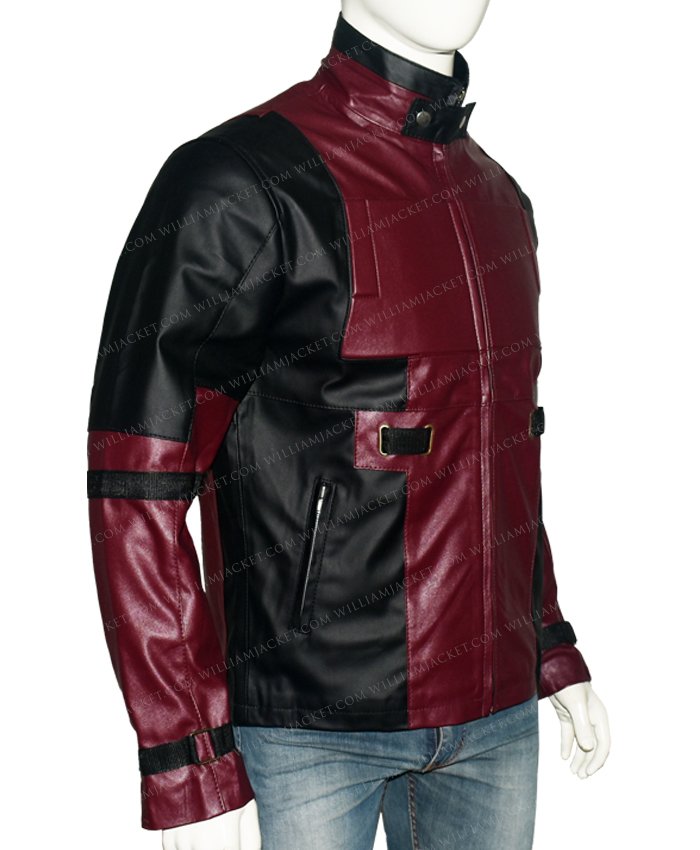 Interested to have an awesome jacket then you have to consider a superhero from Marvel Comics character Deadpool Wade Wilson red leather jacket. The character portrays by Ryan Reynolds, who wore this red and black combinational jacket and is now available for you.