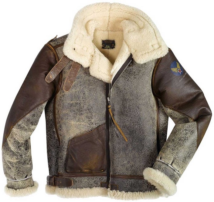 Seth Cockpit Flying SF Bomber 100 Mission Distressed Brown Sheepskin Shearling Fur Leather Jacket