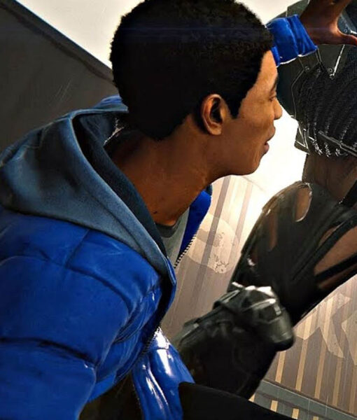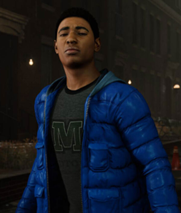 Spider-Man Miles Morales PS4 Video Game Puffer Quilted Parachute Hooded Blue Jacket