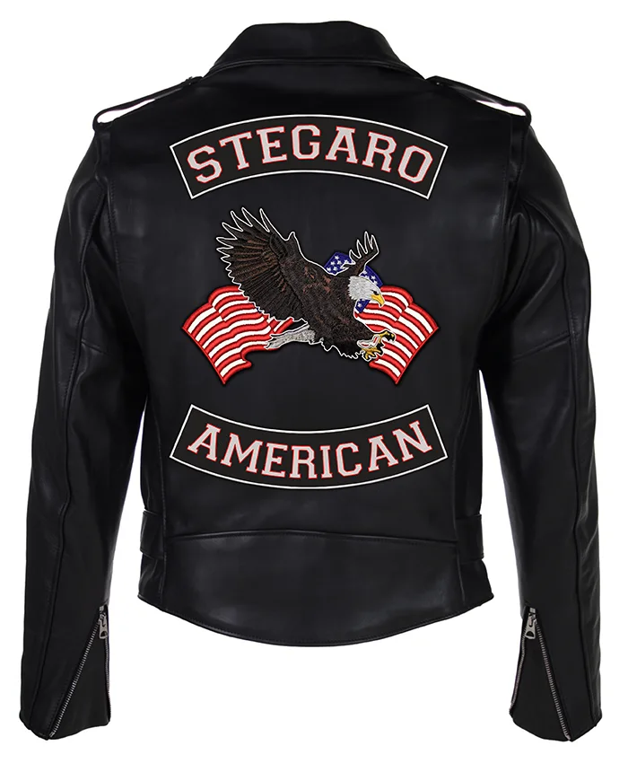 Stegaro American Black Biker Motorcycle Leather Jacket For Sale