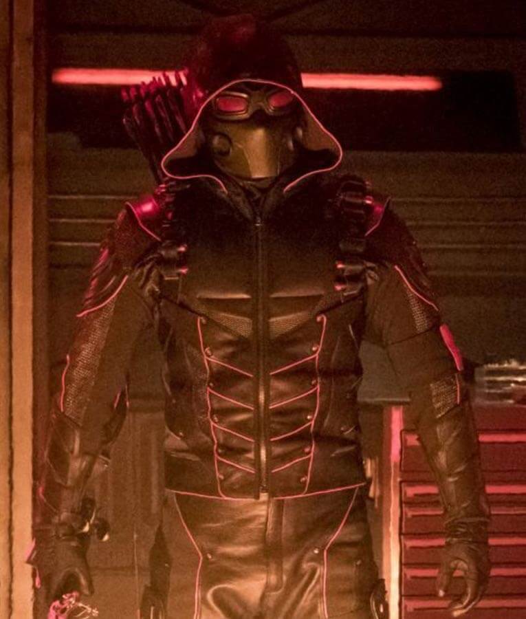 The Stephen Amell Crisis On Earth X Dark Arrow Hooded Jacket With Quiver has padded red outline which gives it a most beautiful look. It has full-length sleeves with padded arms design which makes it unique from the other style.