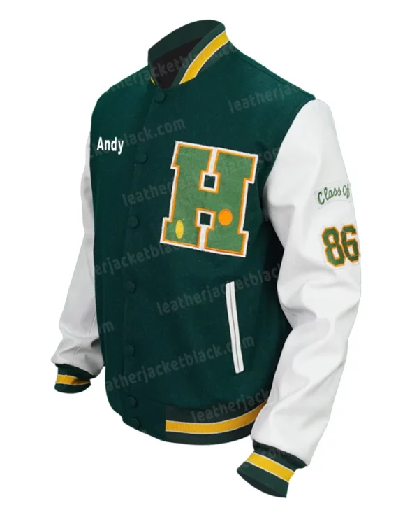 Eddie Munson TV Series Stranger Things Joseph Quinn Letterman Fleece Jacket is styled in green and white for the added wow factor. Additionally, it features a traditional rib-knitted collar, full-length sleeves, rib-knitted cuffs, and a stud-pressed front fastening. The two-side waist compartments are handy. This stylish letterman jacket makes it simpler to put together a classic look.