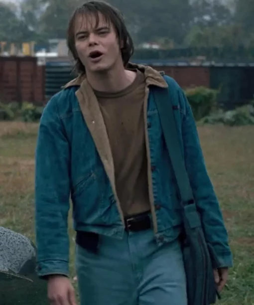 The American science fiction-horror television series Stranger Things stars English actor and musician Charlie Heaton as Jonathan Byers. In addition to being a gorgeous youngster and an outsider at school, Jonathan Byers is a member of the Byer family and an aspiring photographer. He became extremely well-liked thanks to his approachable youthful persona and his awesome, cool male appearance. Fans of Jonathan Byers will enjoy the Stranger Things Jonathan Byers Sherpa Blue Denim Jacket.