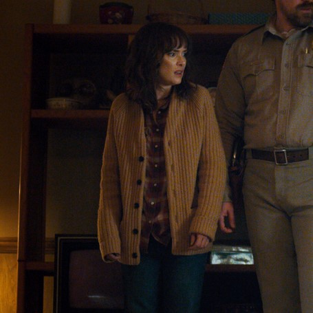 Winona Ryder Stranger Things Season 02 Episode 04 Joyce Byers Brown Cardigan Sweater