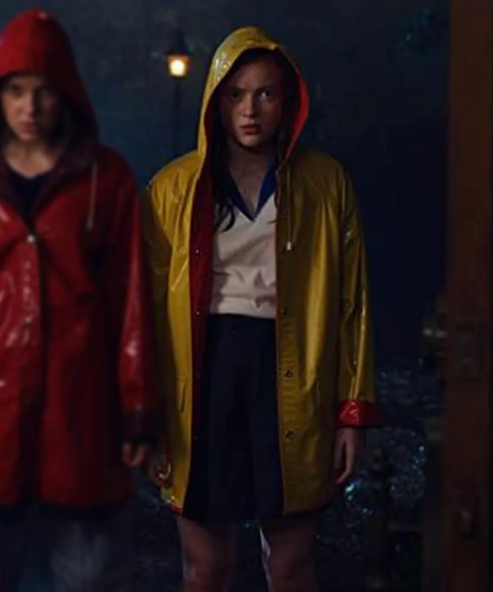 Stranger things is a famous web series based on the genre of supernatural thriller and science fiction. It has some great visuals and brilliant acting. Upgrade your lifestyle by buying and wearing this cool-looking Sadie Sink Stranger Things Yellow and Red Hooded Leather Rain Coat It was first on aired in 2016. So far, it has four seasons to its credit, with the fifth and the last one in the pipeline. It is the story of a young boy gone missing due to some supernatural forces. His mother, police, and friends are searching to recover it soon.
