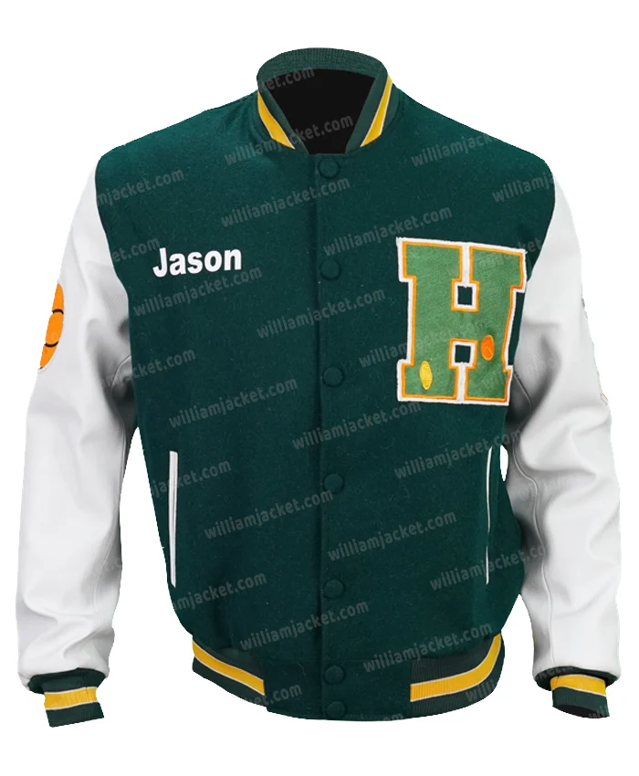 Mason Dye Stranger Things Season 04 Episode 06 Jason Carver Green and White Letterman Varsity Jacket is the perfect accessory for every season. Its design was inspired by Mason Dye’s flawless sense of fashion while playing Jason Craver. Due to the Jacket’s alluring features, like the buttoned front, rib-knitted style collar, rib-knitted cuffs, and lovely green & white combo, the item is already considered one of the best sellers in the entire range.