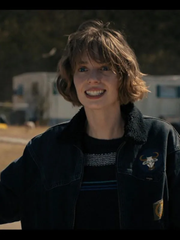 Maya Hawke Stranger Things Season 4 Robin Buckley Black Sherpa Denim Jacket