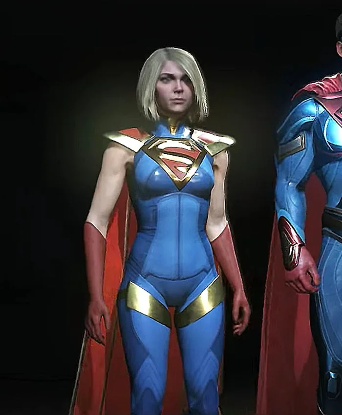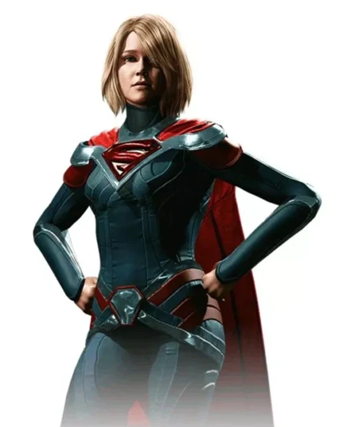 Supergirl in injustice 2 wore a blue leather jacket that was customized by William jacket.