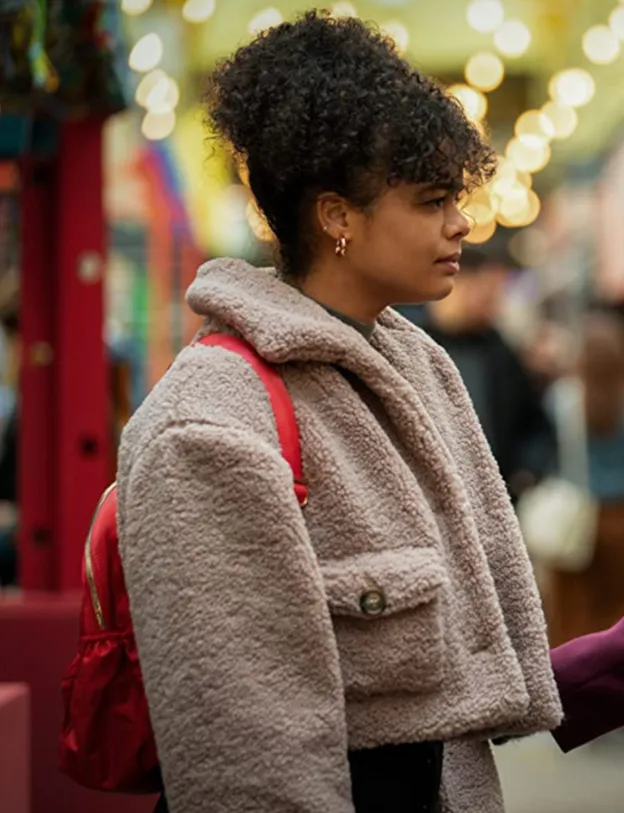 Lydia West Suspicion Season 01 Monique Thompson Sherpa Fur Cropped Jacket