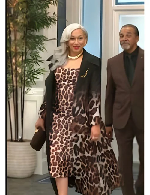 When you watch Beyond The Gates (2025), you know Anita Dupree, played by Tamara Tunie, is not the type of character who fades into the background. In Episode 5, she makes her grand entrance at the board meeting wrapped in this bold ombre leopard coat and honestly, that scene alone proved her wardrobe is as powerful as her presence. The coat isn’t just clothing; it’s a statement piece that mirrors Anita’s mix of elegance, authority, and edge.