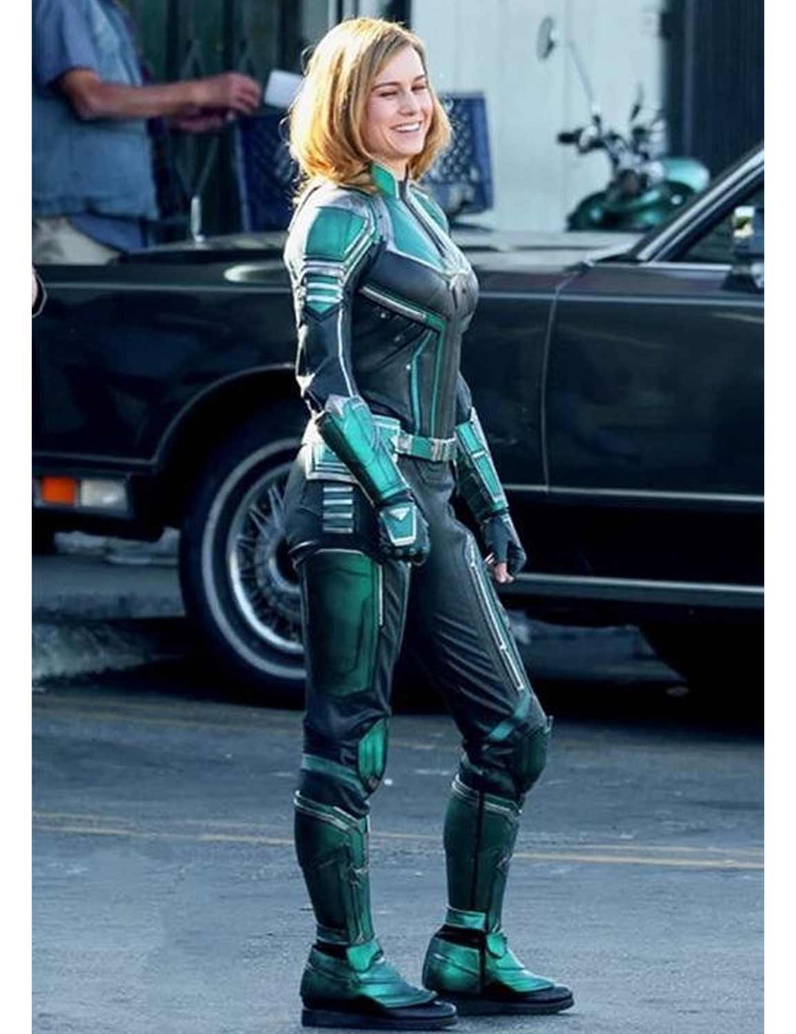 Brie Larson Captain Marvel Team Green Leather Jacket