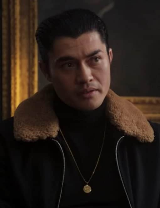 Henry Golding Film The Gentlemen Dry Eye Black Fur Cotton Collar Jacket