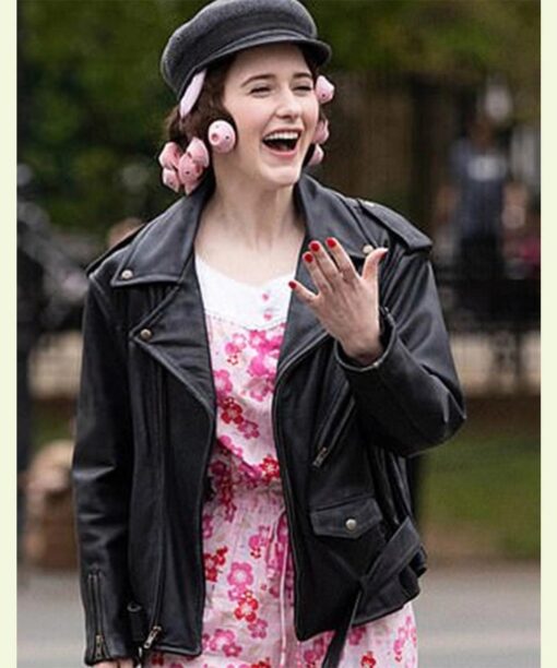Rachel Brosnahan The Marvelous Mrs. Maisel Season 04 Miriam Black Biker Leather Jacket