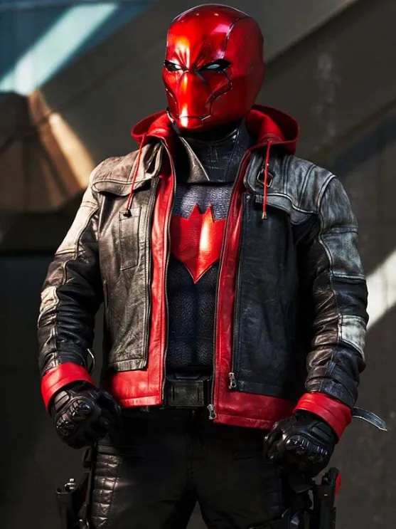 Video Game Batman Arkham Knight Troy Baker Red Hooded Black Leather Jacket