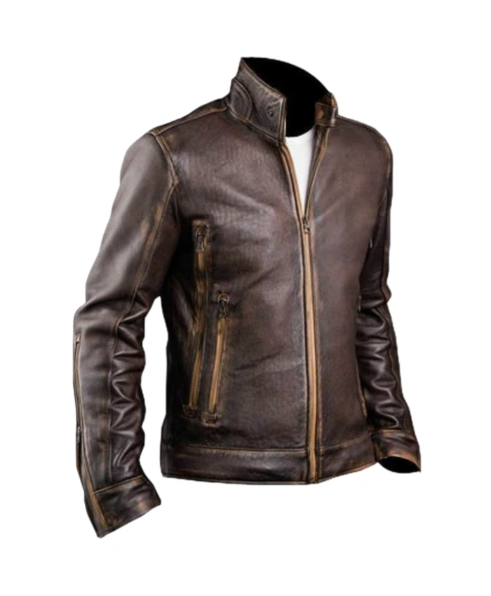 Vinatge Men’s Brown Cafe Racer Stand-Up Collar Jacket
