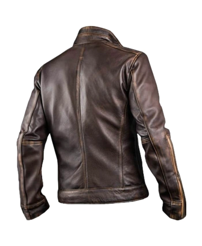 Cafe Racer Real Lambskin Leather Distressed Motorcycle Jacket
