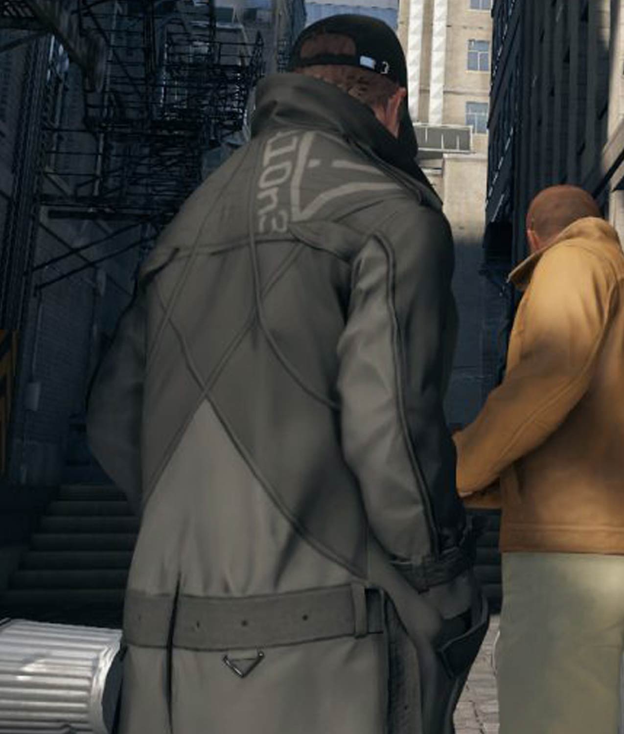 Video Game Watch Dogs Alone Grey and Black Long Leather Trench Coat
