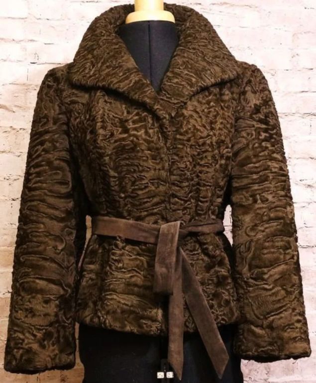 Women Persian Lamb Karakul Fur Brown Jacket
