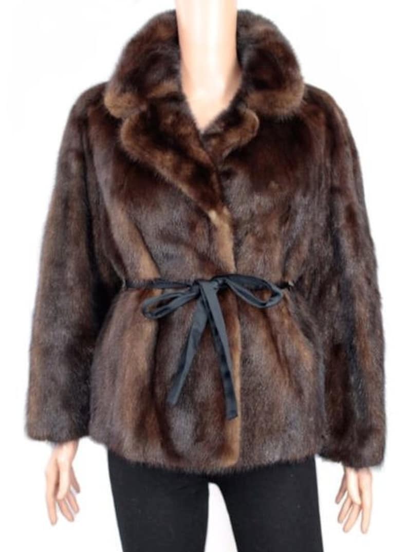 Women’s Real Mink Fur Old 1960s Style Coffee Brown Warm Coat
