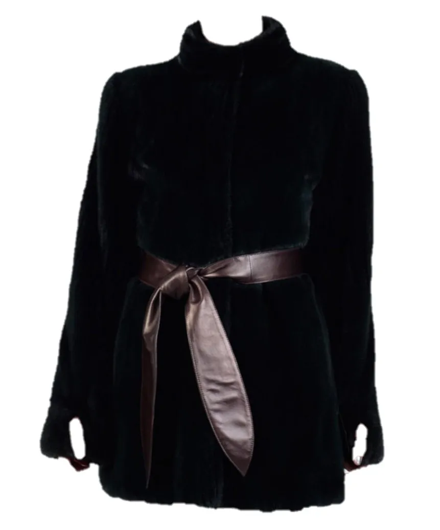 Womens Black Mink Fur Coat With Leather Belt