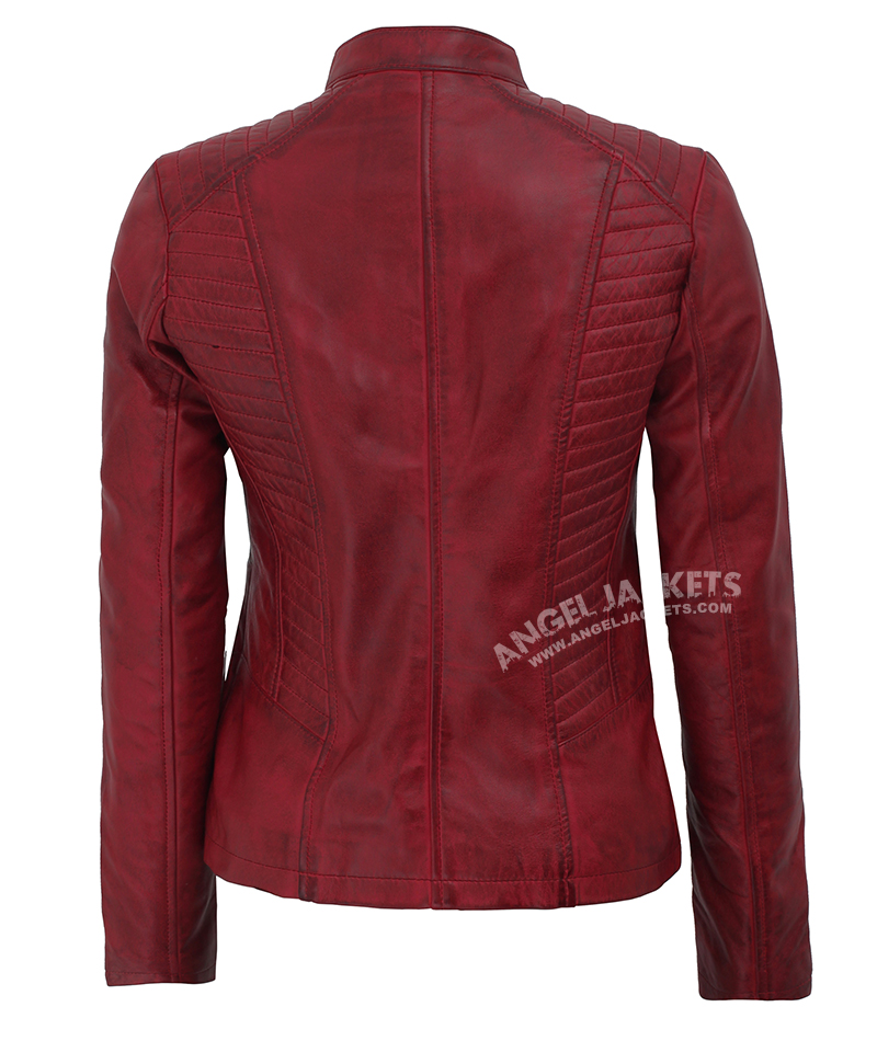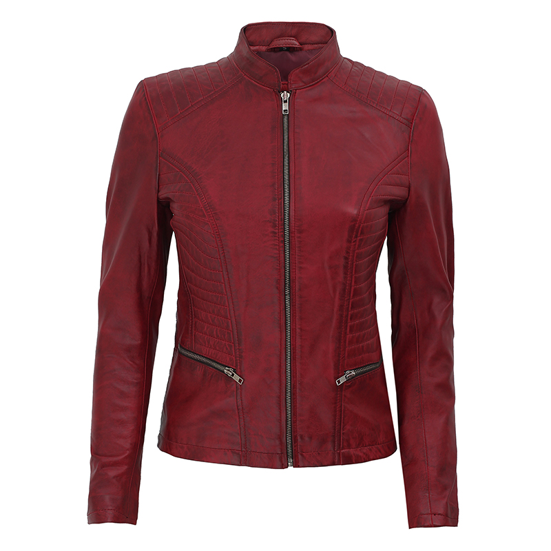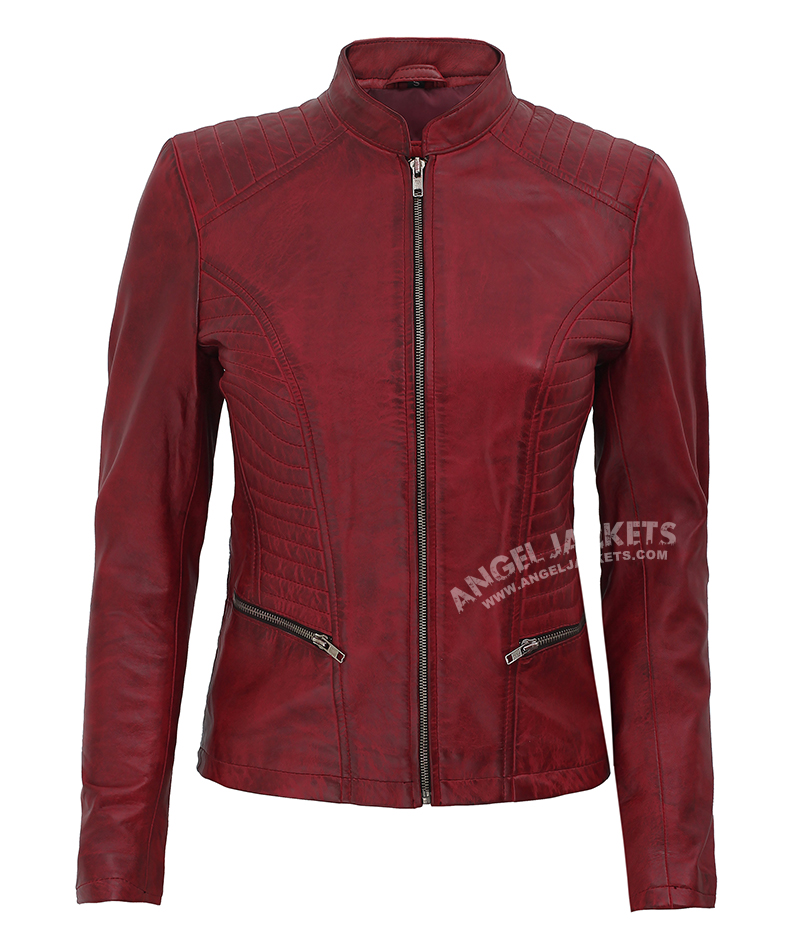Womens Cafe Racer Maroon Leather Jacket