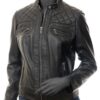 Womens Lambskin Leather Black Quilted Biker Jacket