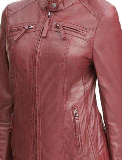 Womens Lambskin Leather Red Vintage Jacket