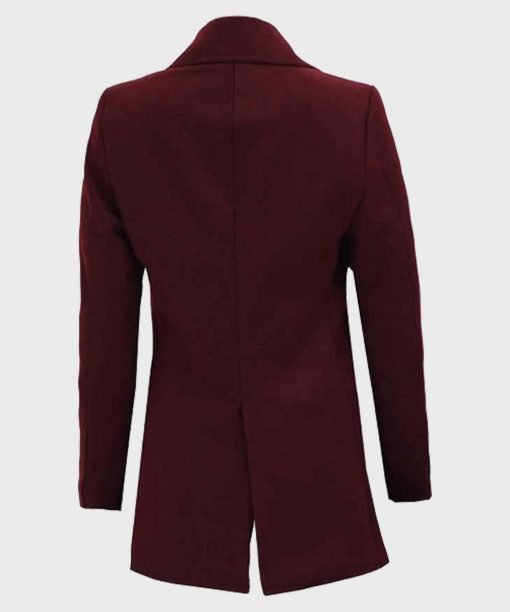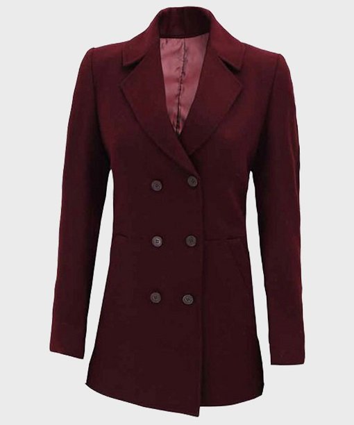 Womens Maroon Wool Blend Pea Coat
