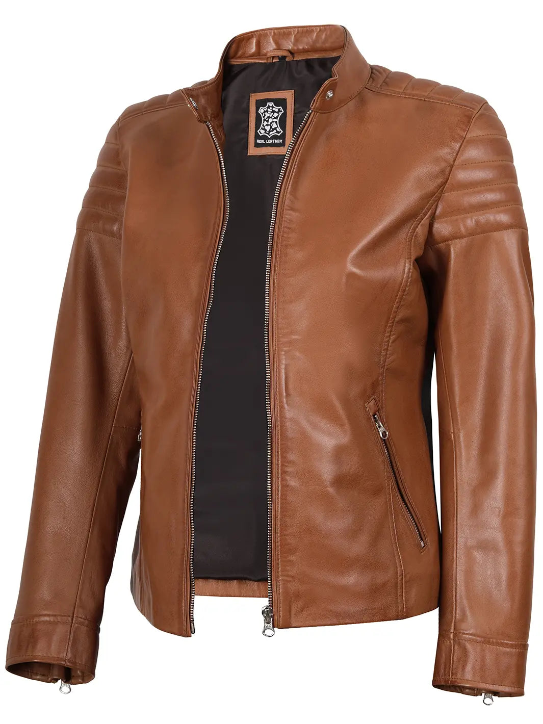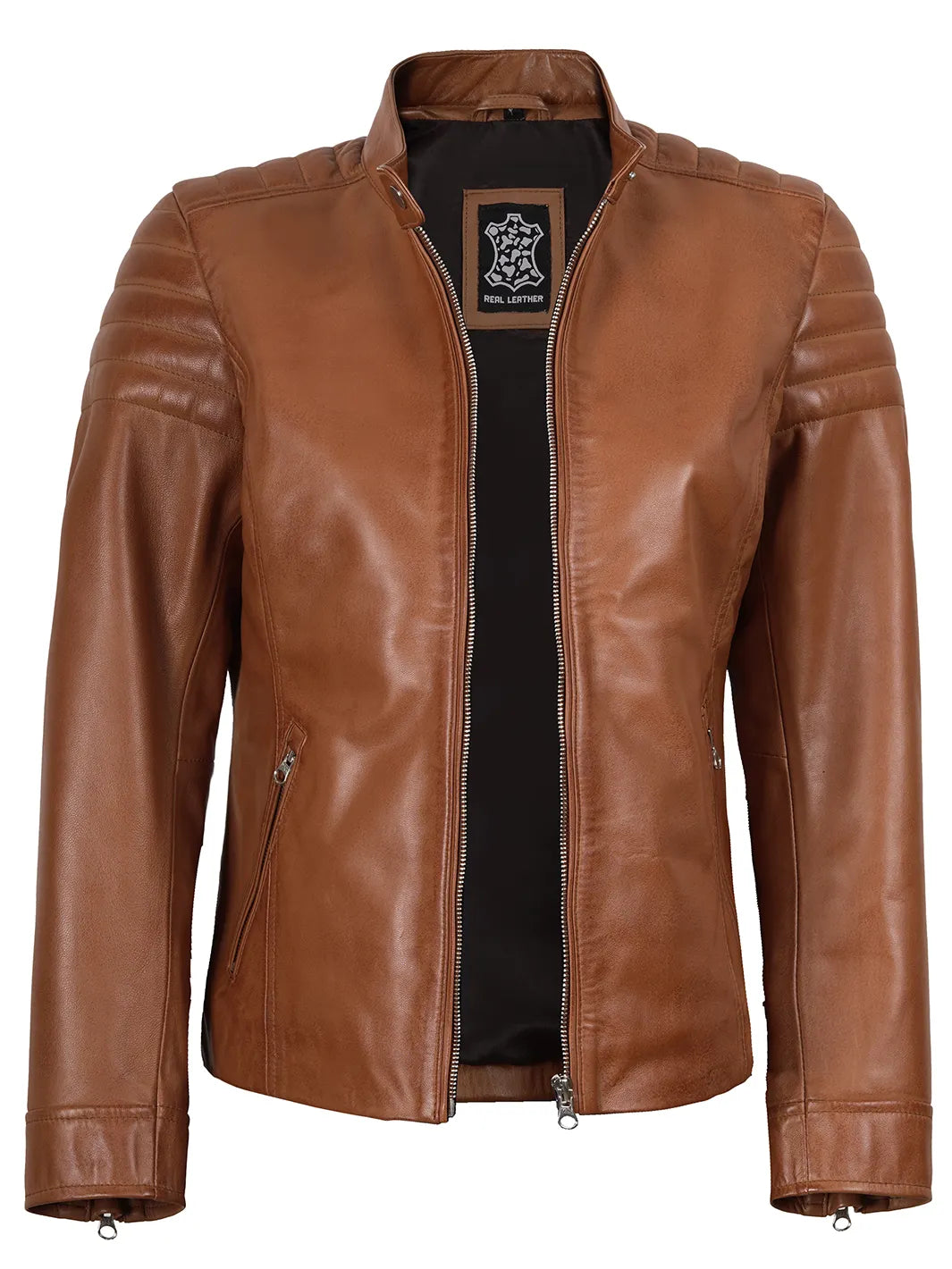 Elevate your style with our Women’s Tan Brown Cafe Racer Leather Jacket. Crafted with real lambskin leather with a touch of motorcycle fashion, this jacket showcases classic elegance with a modern twist. The sleek brown finish adds a touch of sophistication, making it a versatile choice for your wardrobe.