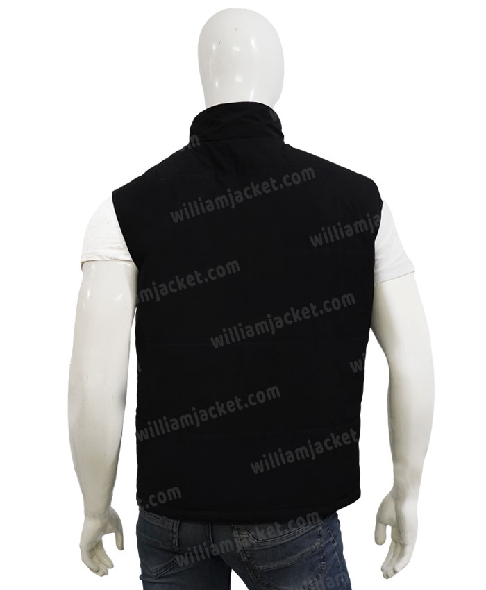 Kevin Costner Yellowstone TV Series Mens John Dutton Black Quilted Parachute Vest Jacket