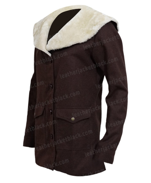 The sleeves of this coat are in their full length. It has a belt with the hemline. The coat has a fur collar style due to which it becomes very peculiar. It is available in brown color which is very awesome and superb. The tool of this gorgeous coat is very low which is very jocular for everyone. The stitching routine is very fine which gives this Yellowstone jacket a neat and tidy look.
