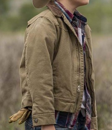 Brecken Merrill wears the Yellowstone S03 Tate Dutton Zipper Jacket made of 100% cotton material. You can wear it at public gatherings and outdoors.
